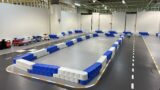 - 固定位置ステッカーの位置にて、バスの進行方向『後向き』でおき、車輪ストッパーをロックしてください。